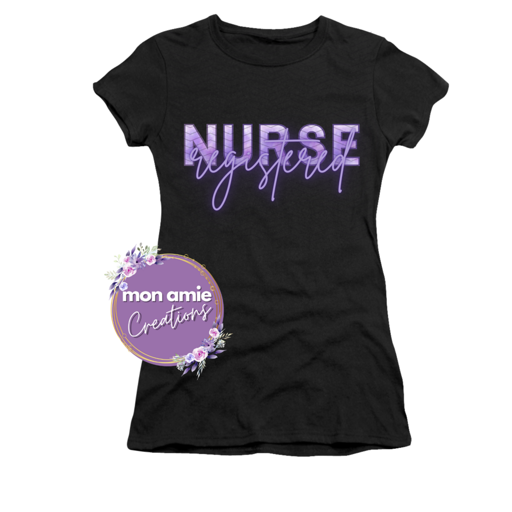 Bold and bright with purple letters, letting everyone know you're an RN. Original design by Mon Amie Creations. All Rights Reserved.